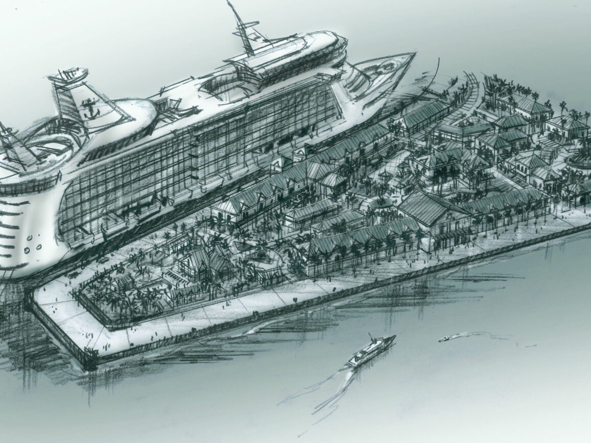 Artwork shown here by others with direction and input from members of BaseMint. Master planning, concept and schematic design for the historic Falmouth Cruise Port. Members of BaseMint lived on-site in Falmouth for one month to assist A/E teams to maintain creative intent.